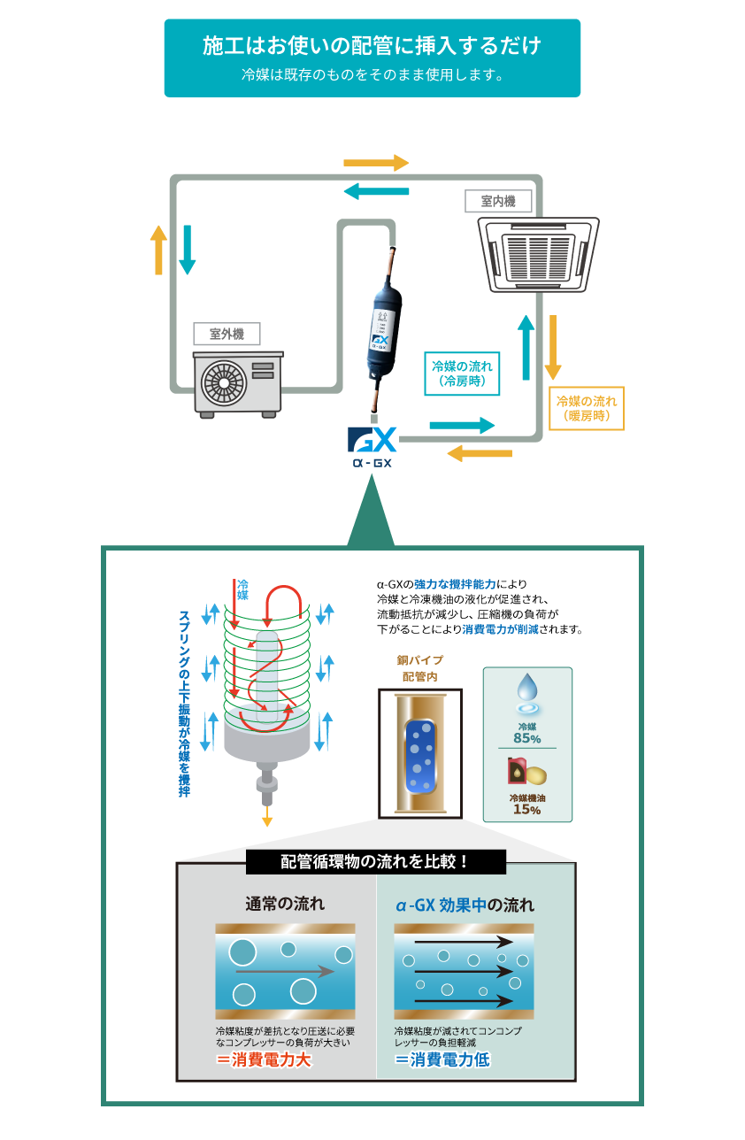 α-GXは、大型空調・冷蔵・冷凍機の消費電力削減を可能にします。
